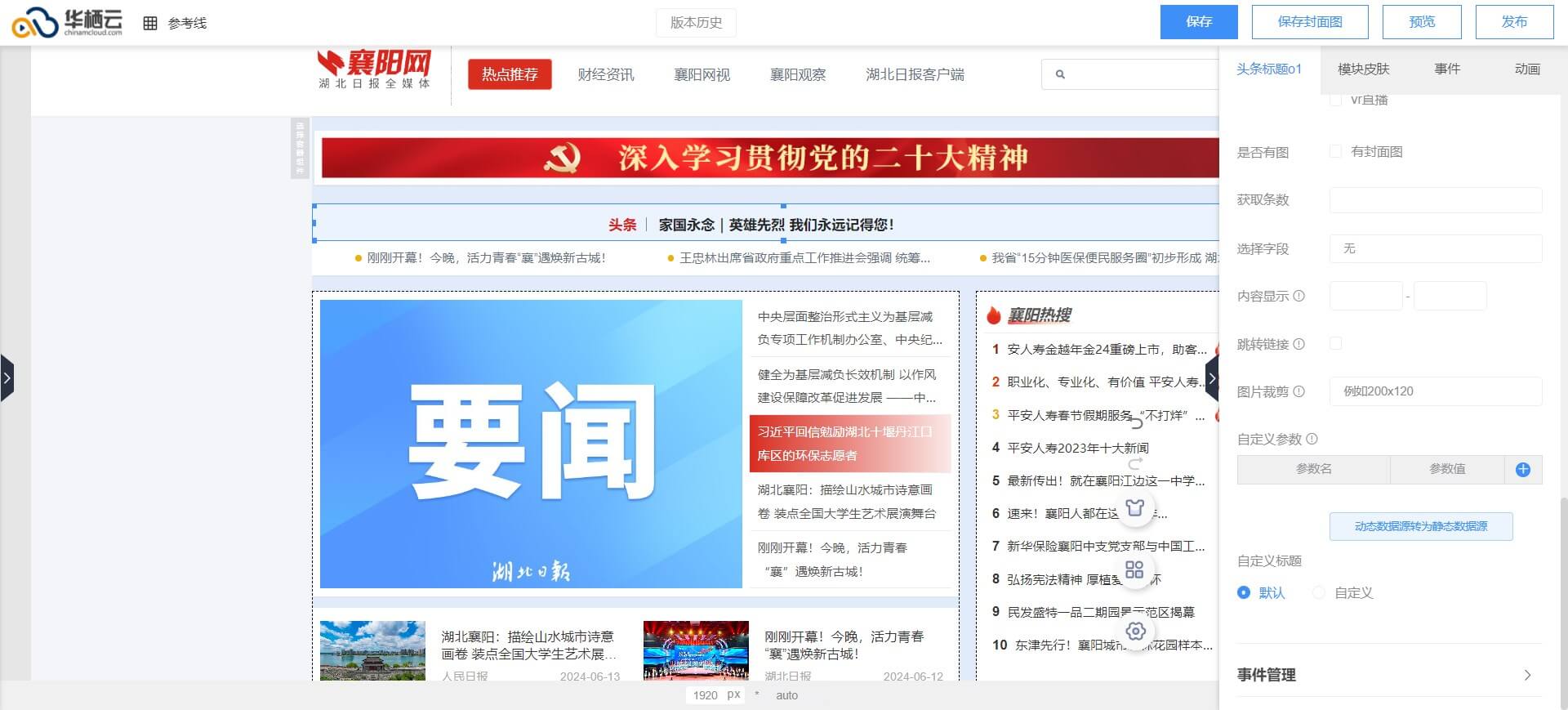 - 1、使用低代码平台快速搭建湖北日报4个pc端,4个移动端CMS站点。