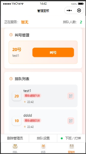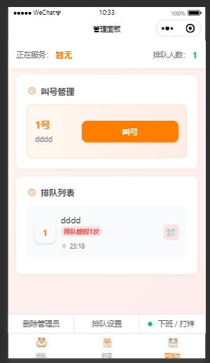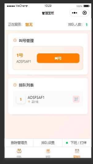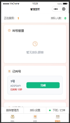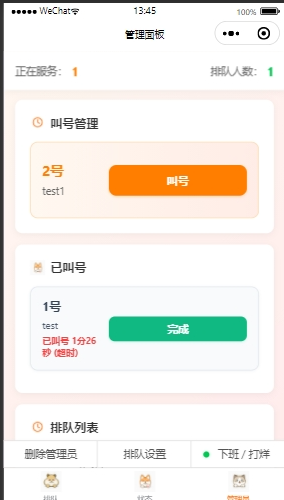 - 提供管理员设置,叫号功能。