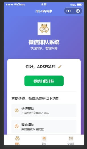 - 提供扫码排队功能。