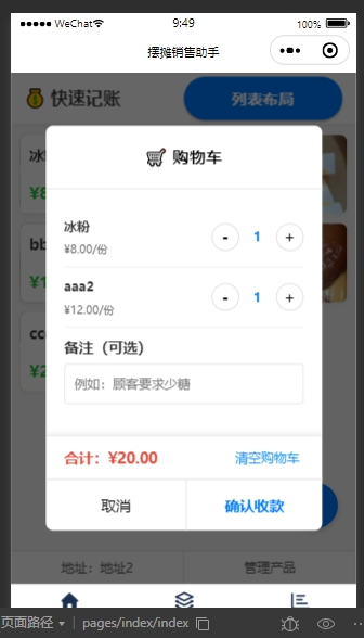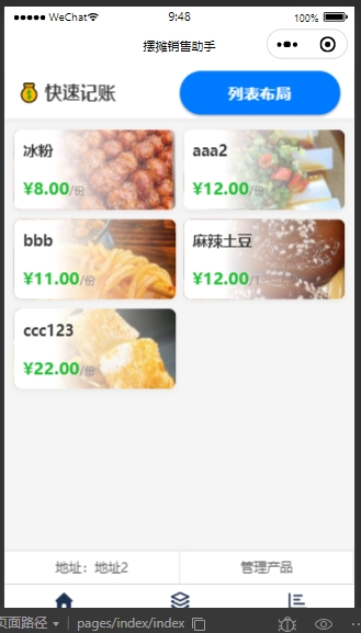 - 摆摊助手小程序独立开发独立全栈开发使用Express以及微信小程序开发的应用。Responsibilities